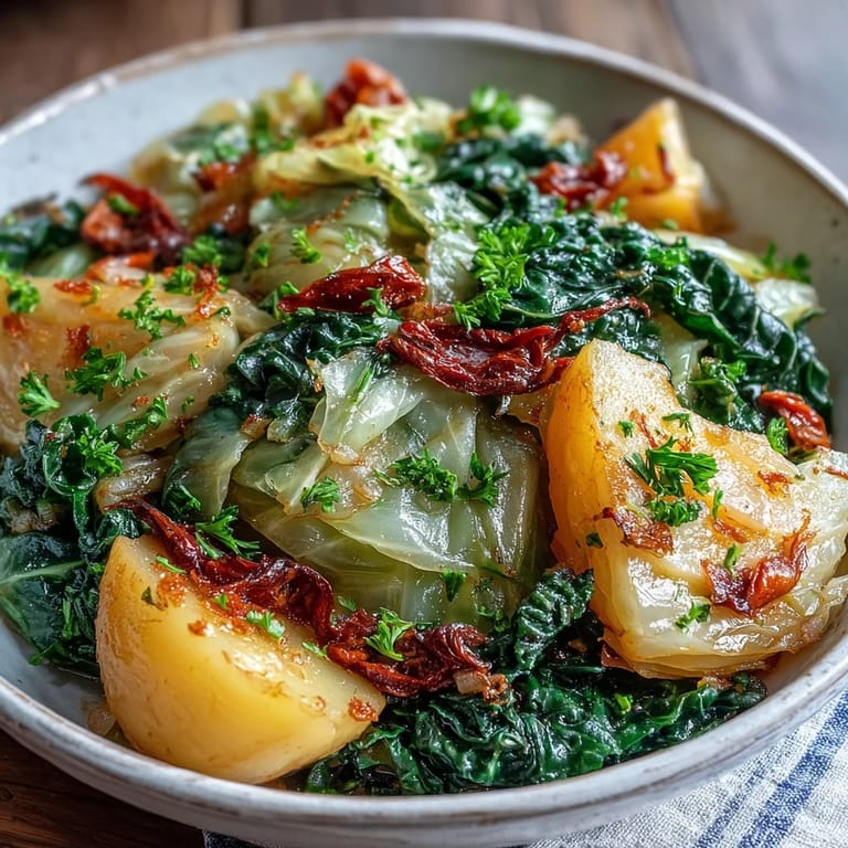 Pin it The smell of butter melting into cabbage used to confuse me—it was too simple to be this good. I'd walked past a tiny kitchen in Prague once, windows fogged with steam, and caught that exact scent drifting out into the cold street. Years later, I finally tried braising cabbage with potatoes myself, and it turned into one of those dishes I make when I need something quietly satisfying. No fuss, just layers of flavor that sneak up on you.