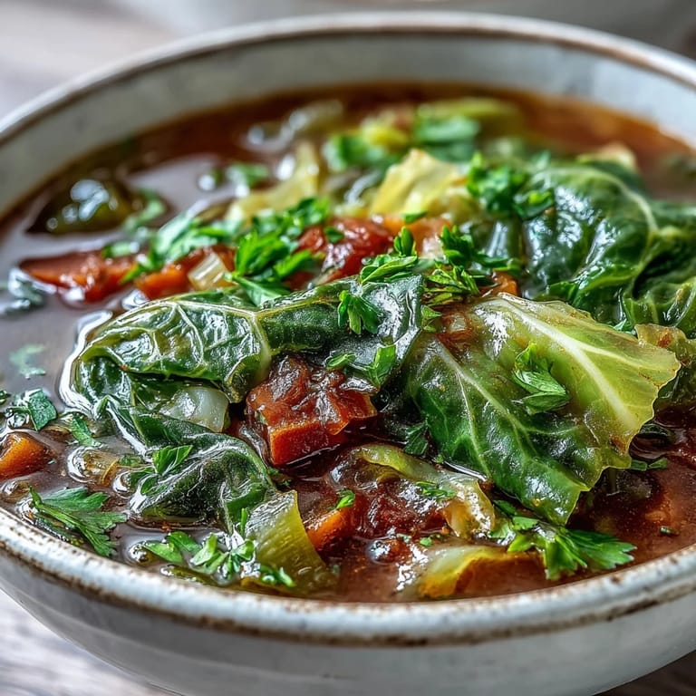 Pin it I found this soup on a Wednesday evening when the fridge looked bare and I was too tired to go shopping. A leftover cabbage sat wedged in the crisper, along with some lonely carrots and celery. I chopped everything up, threw it in a pot with some broth and canned tomatoes, and an hour later I had the most surprisingly delicious dinner. It felt like discovering gold in the pantry.