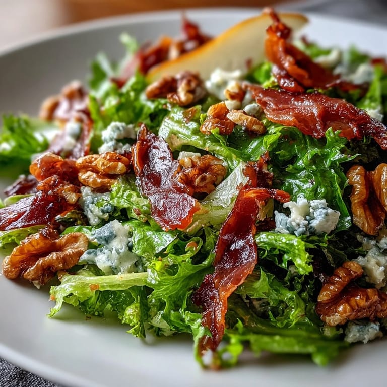 Pin it My friend texted me a photo from a Paris bistro: a plate of frisée with a perfect golden egg yolk pooling into crispy lettuce, and I realized I'd been missing the whole point of this salad. Not long after, I swapped the egg for blue cheese and prosciutto, and suddenly this became the dish I'd make whenever I wanted to feel like I'd traveled somewhere elegant without leaving my kitchen. The combination of bitter greens, sweet pears, and that salty-funky cheese creates such a satisfying tension on your palate that you'll want to make it again before you've even finished the bowl.