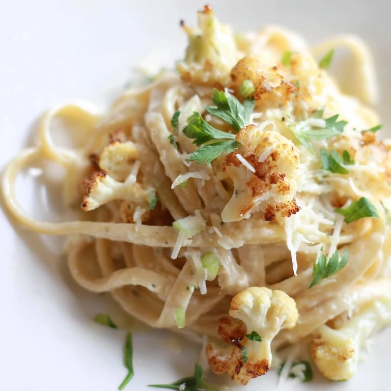 I made this for my sister on a Tuesday when she showed up tired and hungry, skeptical of anything labeled lighter. She finished her plate before I did and asked if there was cream hidden somewhere. There wasn't. Just roasted cauliflower doing what it does best when you give it heat and time.