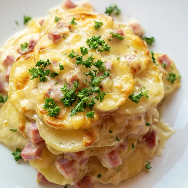 Pin it The smell of this baking still takes me back to my grandmother's tiny kitchen, where she'd prop the oven door open just enough to warm the entire apartment. She made scalloped potatoes for Sunday dinners, but my version with ham came from a happy accident one Tuesday when I needed to use up leftover holiday ham. Now it's the dish my family requests most often.
