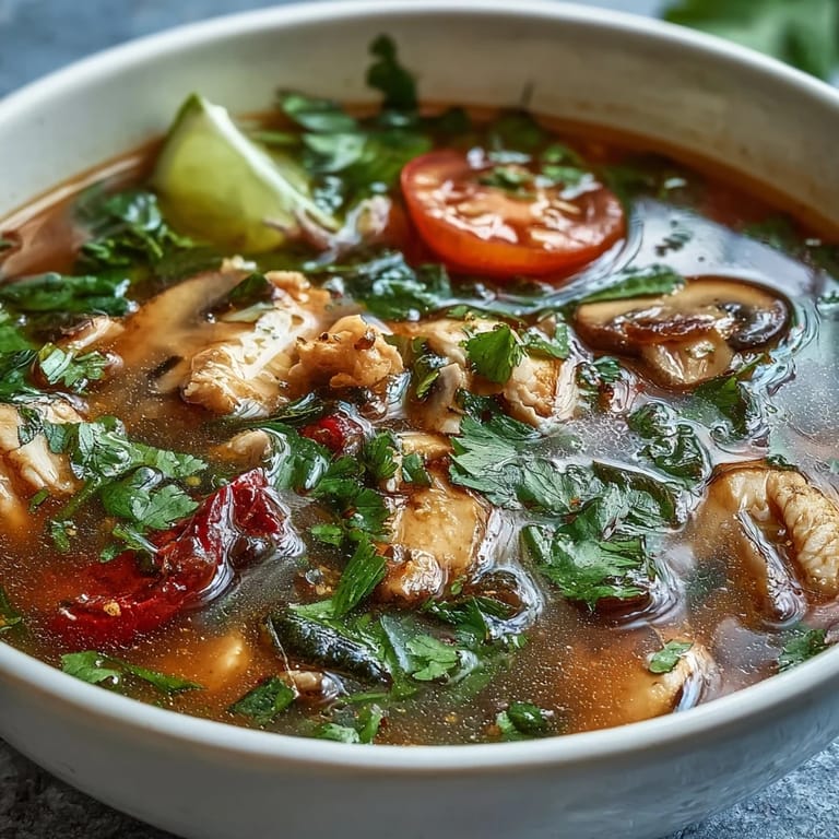 Pin it My first real Tom Yum was served in a tiny Bangkok street stall where the owner insisted I watch her work, crushing lemongrass against the pot's rim with practiced urgency. She moved with such confidence, never measuring anything, just tasting and adjusting until the balance of heat, sour, and salt made her nod with satisfaction. That moment taught me that Tom Yum isn't really about following steps precisely—it's about understanding that interplay of flavors and trusting your palate. Years later, I recreated that soup in my own kitchen, and it became the dish I make whenever I want to feel transported back to that steamy Bangkok evening.